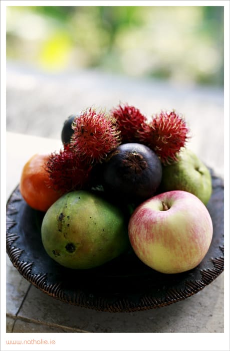 It was a great spot, the rooms were laid out gorgeously, complete with a kind of inside, kind of outside shower, giant balcony with a daybed and a bowl of fresh fruit (even if some of it looked a bit freaky! I wish I had asked someone what the spiky fruit was, or, better still, wish I had been brave enough to actually try it).