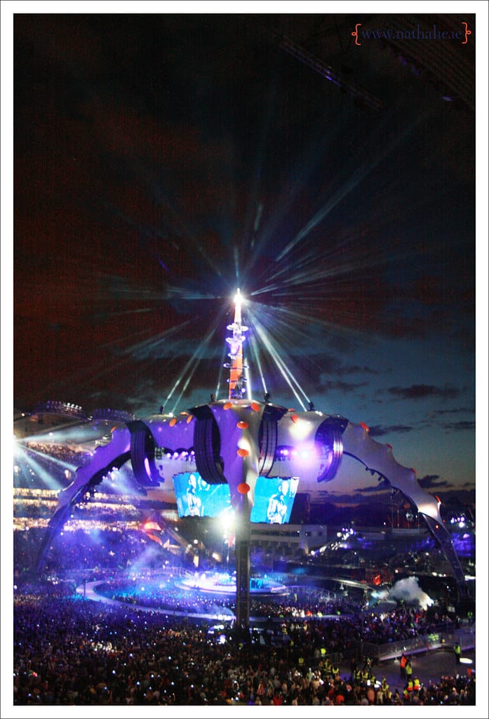 I'm so glad we went. The gig rocked the proverbial casbah, and I found myself really surprised at a) how many songs I could sing along to and b) the emotional tug of some of those songs, like Walk On, One, Stuck in a Moment You Can't Get Out Of, With or Without You and Stay (Faraway, So Close) (which, by the way, they didn't play on Friday - I listened to it on the balcony on Monday).