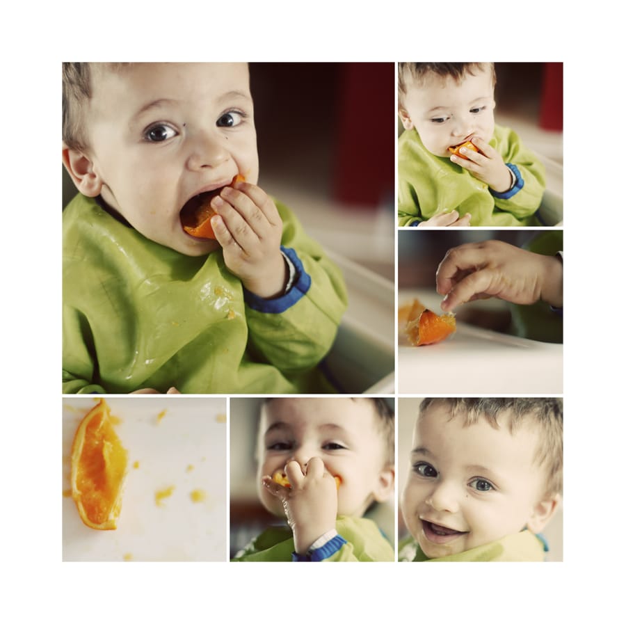 Isn't this boy a happy camper? He had been off oranges for a couple of weeks due to an upset tummy, and this is him getting stuck back in. Love the big happy mess he makes.