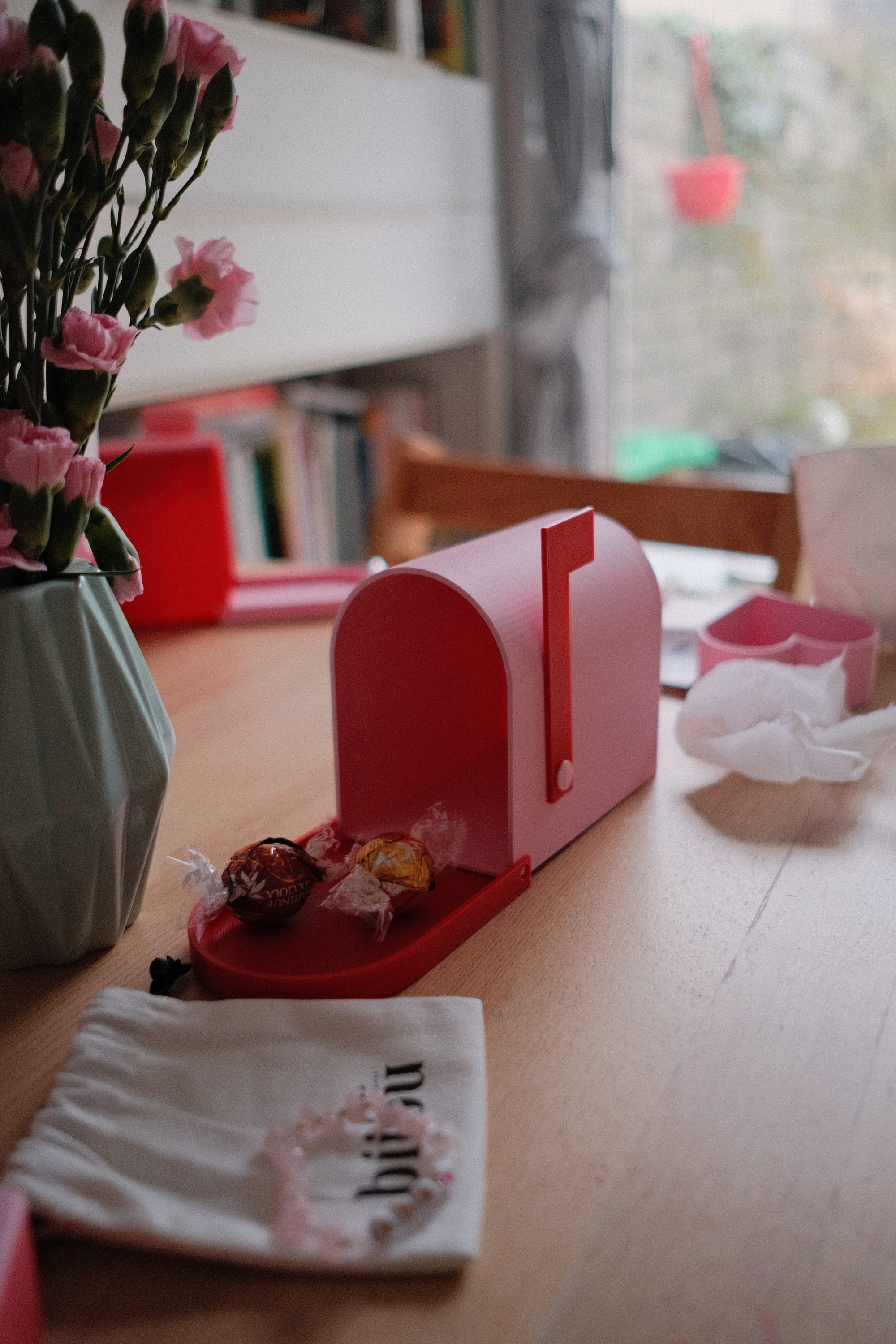 For Valentine's Day, we 3D printed these cute mailboxes for the kids, and popped in some little treats and sweet name bracelets from Irish biz Bijou.
