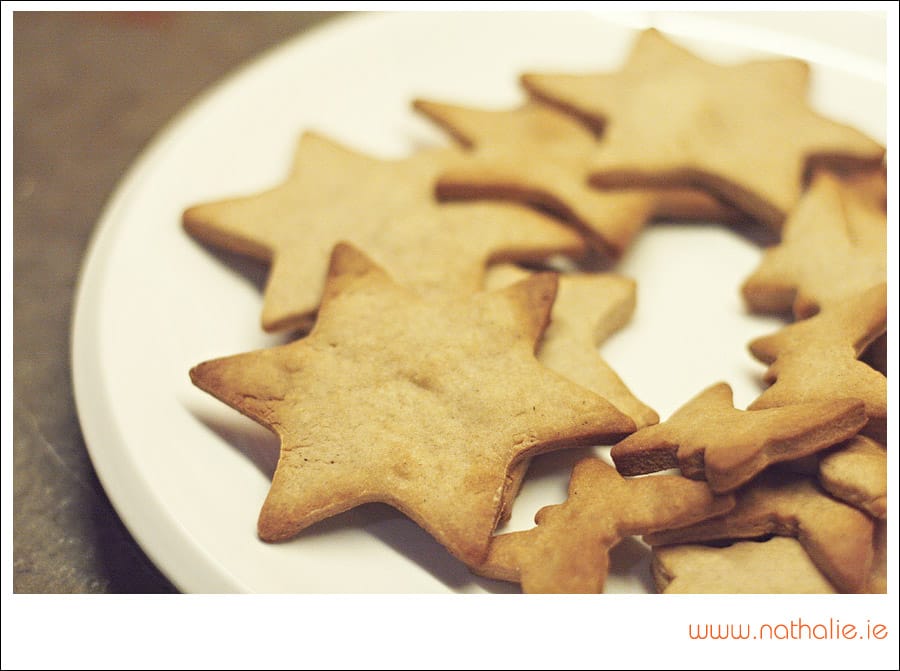 These star-shaped cookies were very cinnamon-y and very yum. Closer to Christmas we're going to make them again but pierce holes in the top and hang them off the tree.