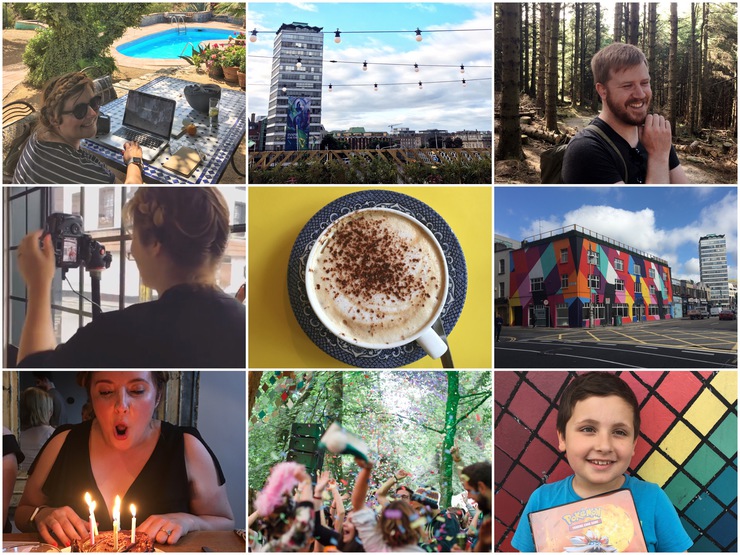 From top left: Desk with a (serious) view as I file copy from Andalucia; the gorgeous new roof garden at Tara Building; Ben in Ticknock Woods; shooting on location in Arran Street East; coffee and scheming with Marta in Cake Cafe; love how my workspace brightens up Tara Street; blowing out birthday candles in Kerala; dancing beneath confetti canons at Sing Along Social; Pokemon themed afternoon out with Ethan, celebrating his birthday.