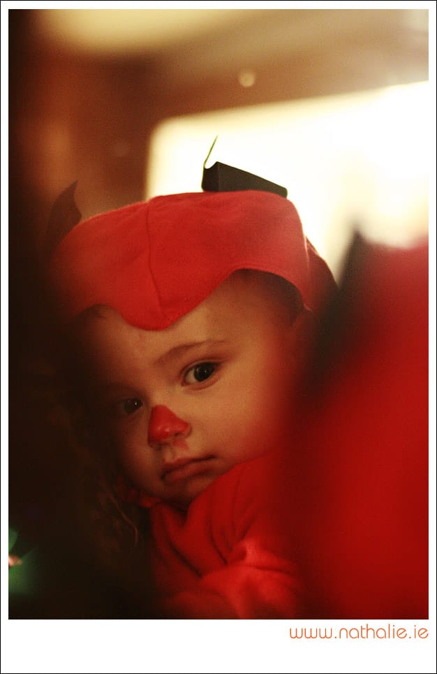 Firstly, the red nose we painted on (Christian Dior Rouge in Celebrity red, in case you're wondering...) confused him a bit - here's a shot of him getting a look at it in the mirror: