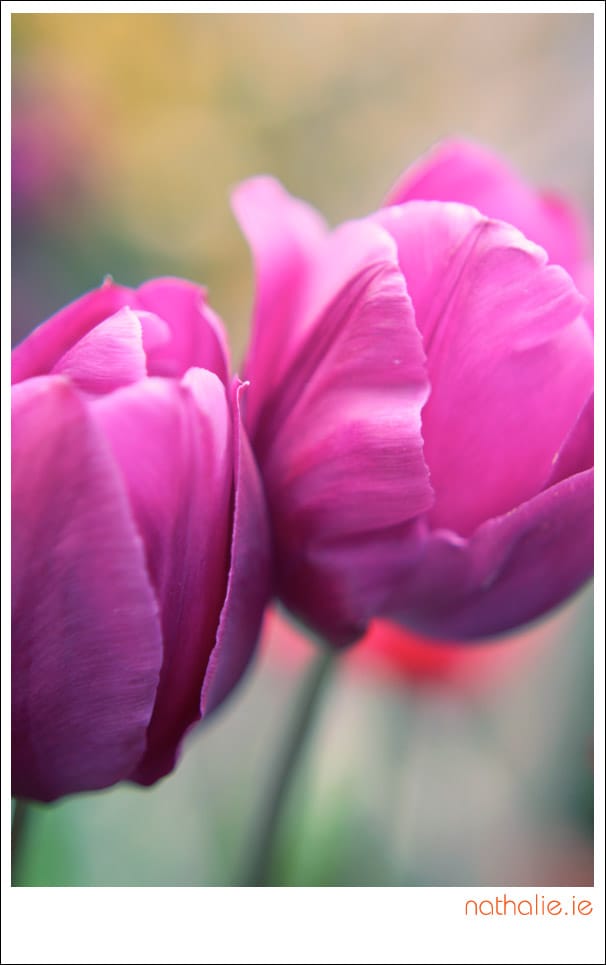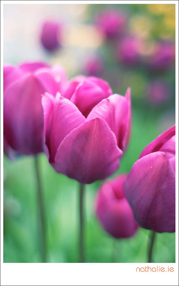 Photographing tulips is both fun and frustrating. They are just so perfect that every shot risks looking like one of those 99c 'Get Well Soon' cards you pick up at petrol stations. But these pink and purple ones were just too pretty to pass up.