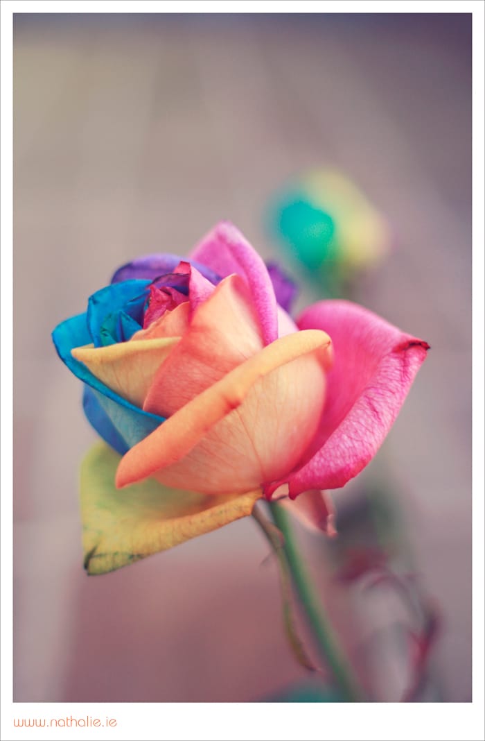 Eoghan surprised me with a gorgeous bunch of these some day last week (brownie point meter goes ding ding ding!). I've always been fascinated by them, and had great fun snapping them. I'm told you achieve the wacky look by injecting the colour right into the stem.