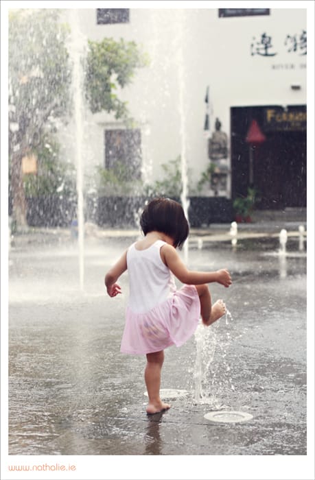 There was a great open-air fountain in a shopping centre in and around Clarke Quay and this little girl was having great fun cooling off: