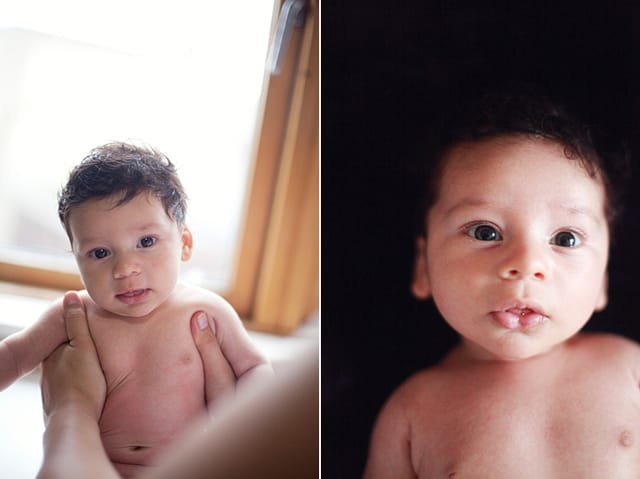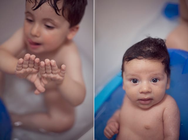 He celebrated with a bath with his big brother, and a mini photo sesh on the bed. Rock and roll.