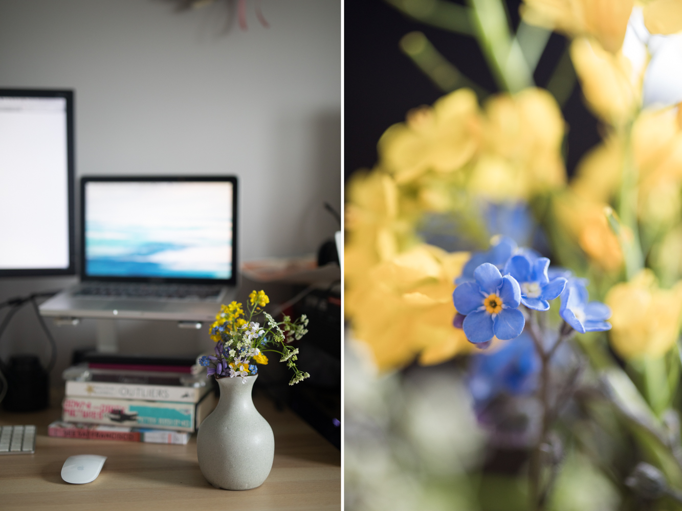 Goes without saying, don't nick anything from private or community gardens! I foraged this little collection of blooms and greens (along with some three-cornered leek) just outside our estate, at the side of a busy connecting road to brighten up my desk and remind me of what's waiting for me next time I head outside.