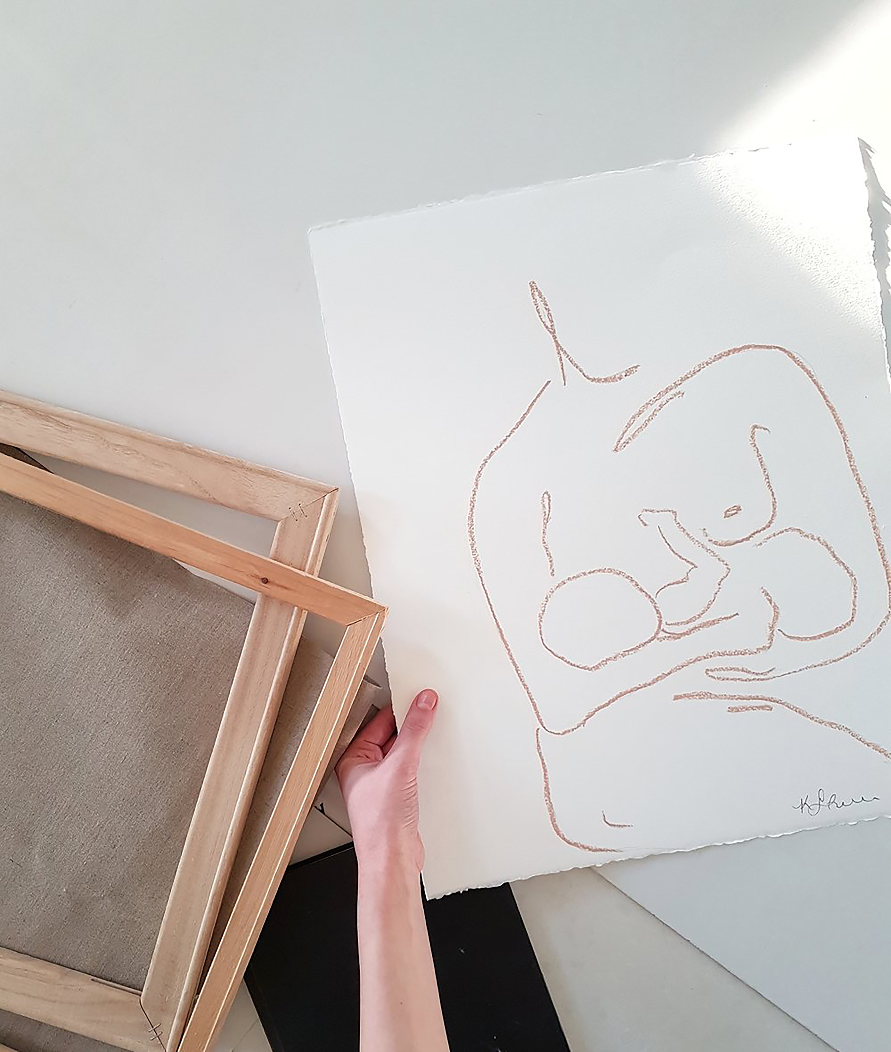 There are a few things we're doing to say goodbye to this period and usher in the next one: I'm working on a little photo book documenting the last nine months, with pictures of our life here in Lisbon, everyone who visited, my growing bump. We've planned a lovely date night at a restaurant that's been on our wishlist for ages. Our doula has also recommended planning a little ritual once I hit 40 weeks to tell the baby we're ready; we're thinking of maybe writing a letter or recording a video Q&A so our kid can know a bit of about what we were like before we were their mum and dad. My energy levels are a rollercoaster right now: I want to cram a million and one things in, but I also just want to sleep for hours in the middle of the day. So yes, there are things we can do. And yet we also know there is nothing we can really do now but wait :) Top pic by the wonderful Barilles. Shot of me by Ben. Gorgeous artwork above by Kayla Gale, whose motherhood series is just beautiful.